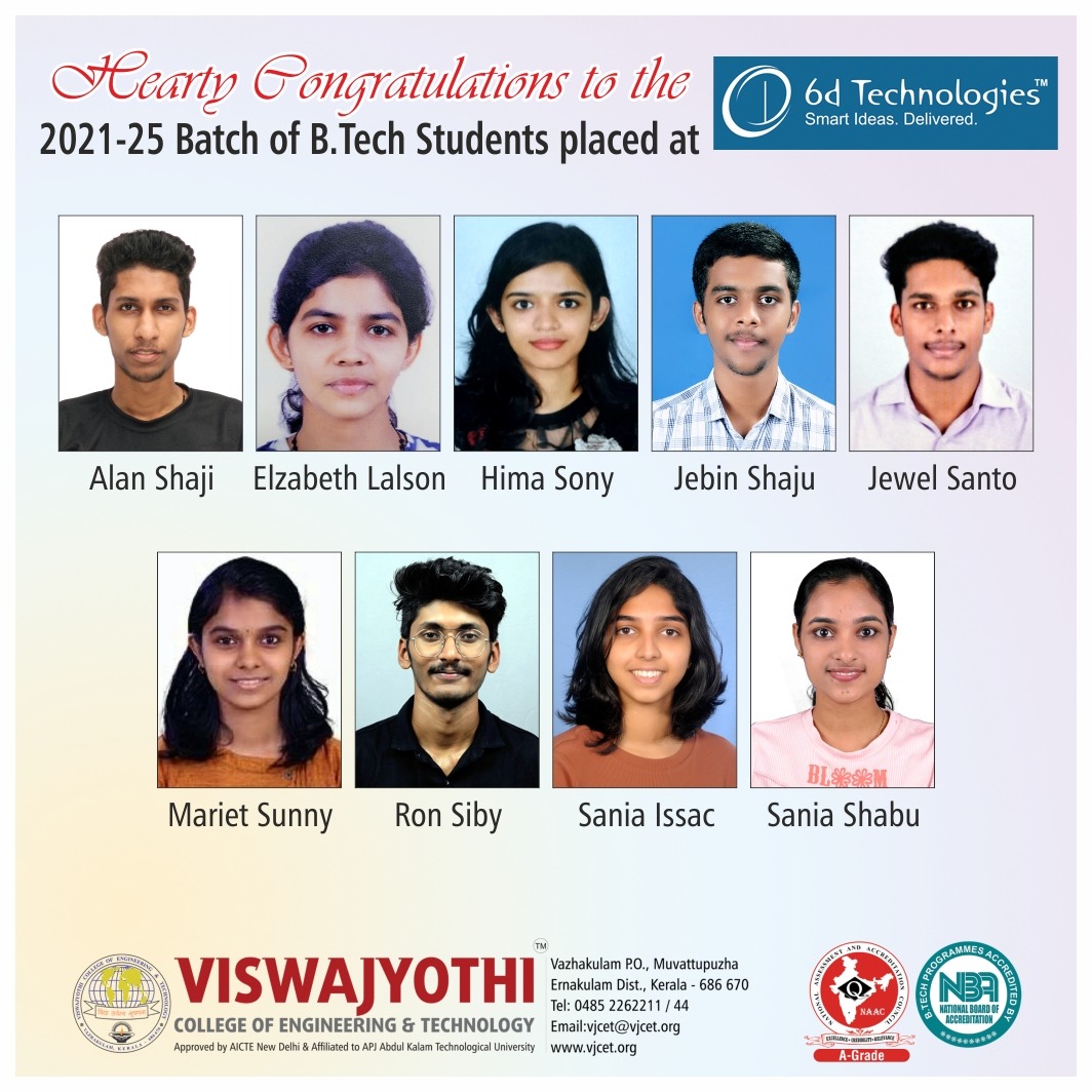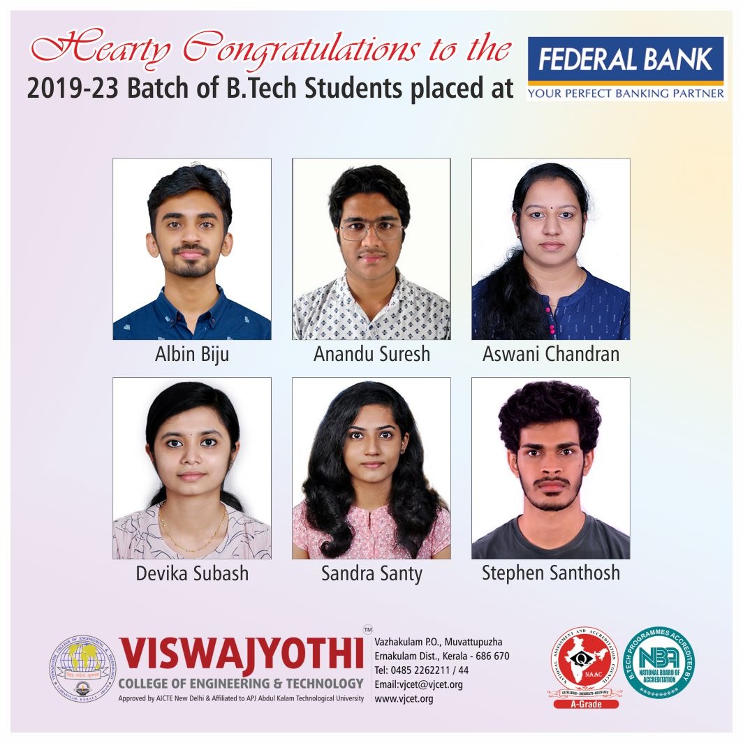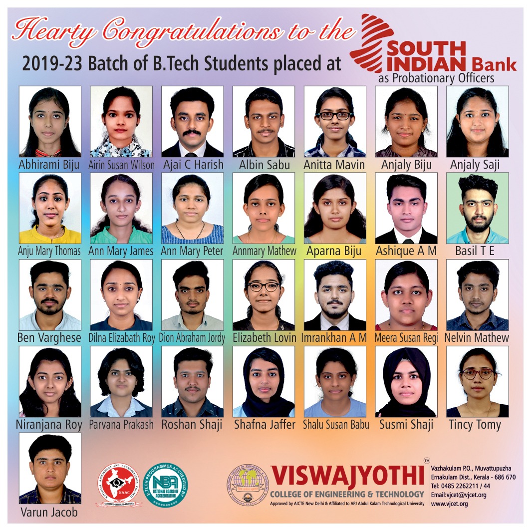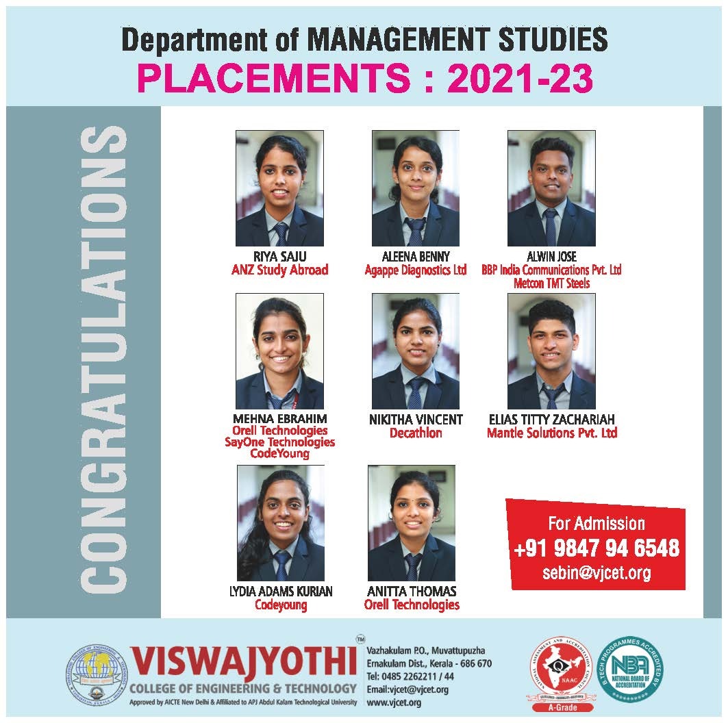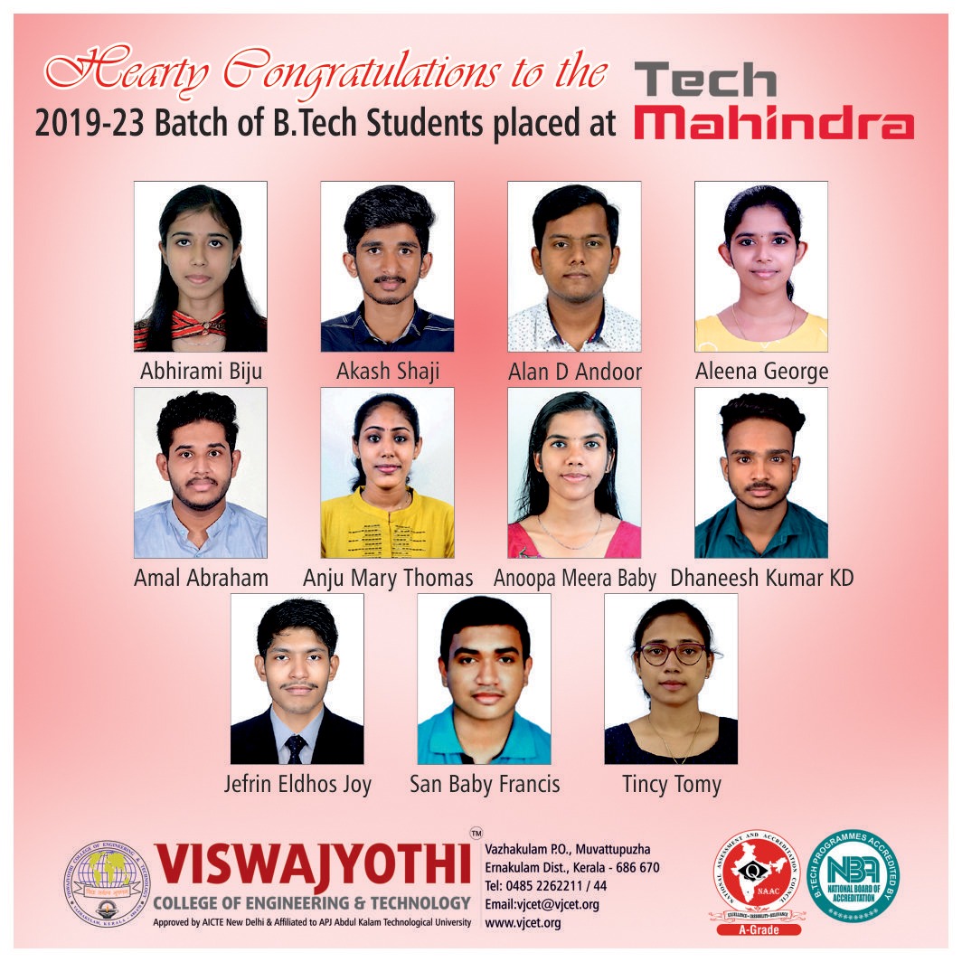 Over 50 companies visit the campus every year for recruitment for B.Tech & MBA. Some of the B. Tech highest packages are offered by – Infosys, Incture,TCS,EY,Nissan,Experion,6D Technologies,Qbrust,Quest Global,Tech Mahindra,Envestnet,RDC Concrete ,South Indian Bank & Federal Bank. The average package is 4 LPA.Some of the MBA highest packages are offered by :- HTIC, Eastern,Reliance Jio,ESAF,Alight Solutions,Excelledia,Techmaghi ,Planet Spark,Codeyoung,We Peejay Ventures Private Limited,Metcon Steels.The average package is 4 LPA.