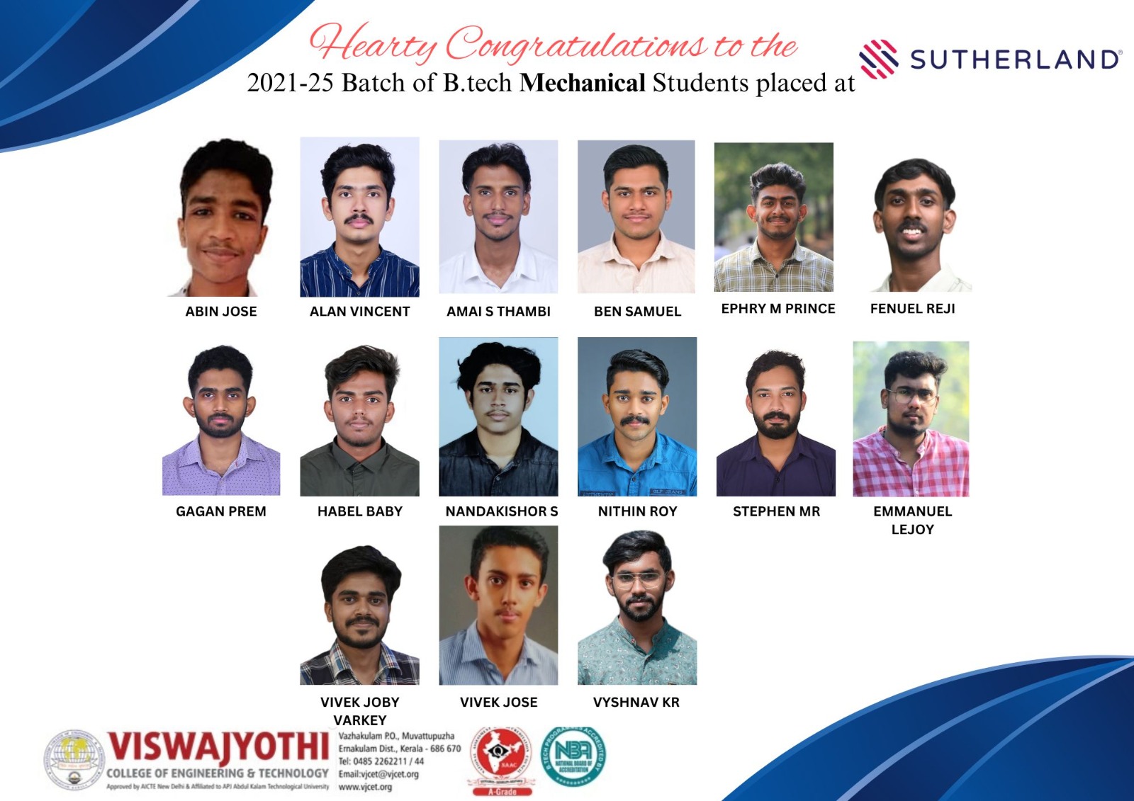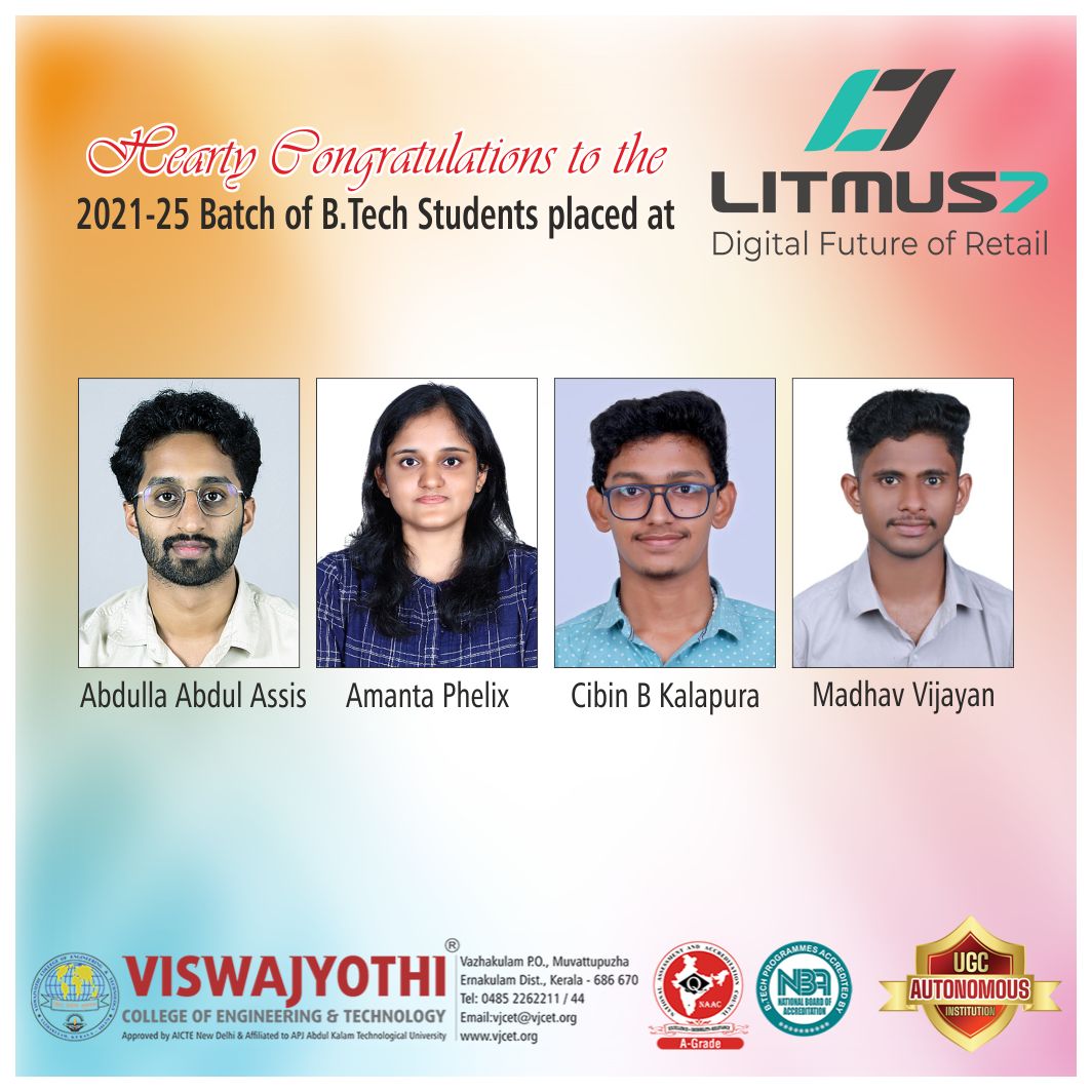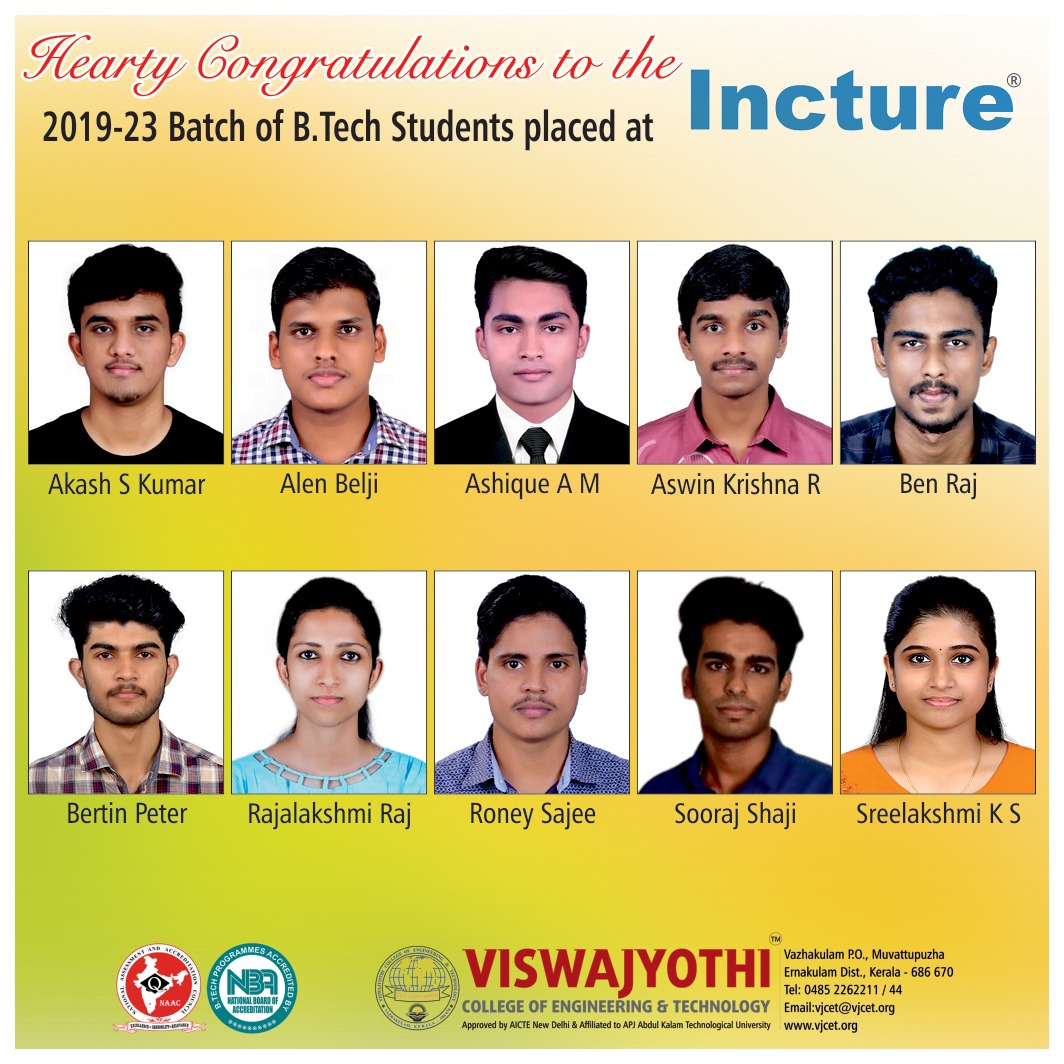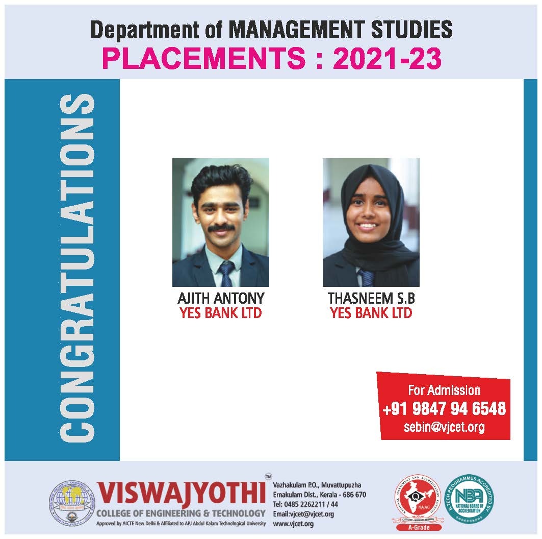 Over 50 companies visit the campus every year for recruitment for B.Tech & MBA. Some of the B. Tech highest packages are offered by – Infosys, Incture,TCS,EY,Nissan,Experion,6D Technologies,Qbrust,Quest Global,Tech Mahindra,Envestnet,RDC Concrete ,South Indian Bank & Federal Bank. The average package is 4 LPA.Some of the MBA highest packages are offered by :- HTIC, Eastern,Reliance Jio,ESAF,Alight Solutions,Excelledia,Techmaghi ,Planet Spark,Codeyoung,We Peejay Ventures Private Limited,Metcon Steels.The average package is 4 LPA.