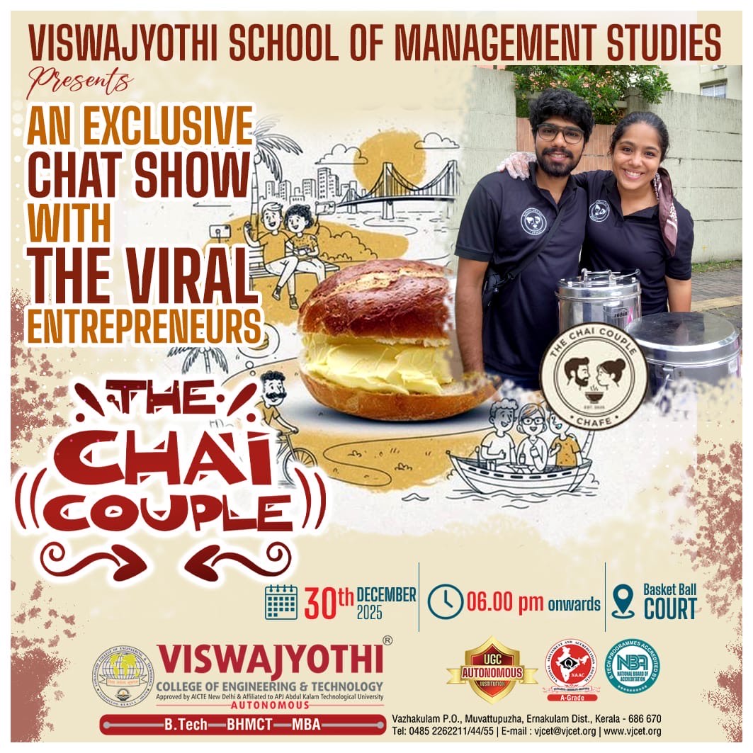 The Department of Management Studies at Viswajyothi College of Engineering and Technology (VJCET), approved by AICTE and currently affiliated to APJ Abdul Kalam Technological University (KTU), Kerala, commenced its full-time MBA programme in 2009. Initially, the programme was affiliated with Mahatma Gandhi University, and from 2016 onwards, it came under the purview of KTU. In 2025, the department proudly launched its first autonomous batch, marking a significant milestone in its journey towards academic excellence and institutional independence.