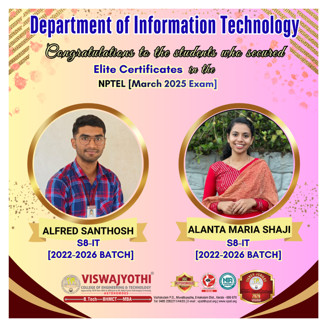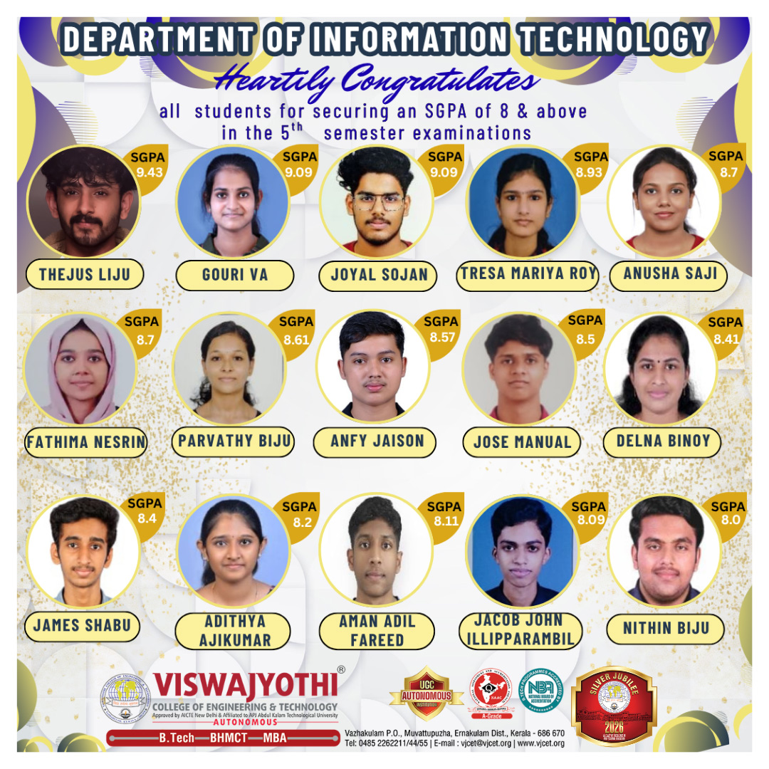 IT Department of VJCET was established in the year 2001 with an intake of 45 students.